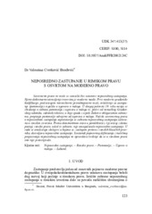 Savremeno pravo ne može se zamisliti bez ustanove neposrednog za stupanja. Njeno doktrinarno utemeljenje tvorevina je moderne nauke. Prve moderne građanske kodifikacije, pod uticajem novovekovne prirodnopravne misli, ovlašćenje za zastupanje (punomoćje) regulišu u ugovoru o nalogu. U drugoj polovini 19. veka menja se shvatanje o odnosu punomoćja i ugovora o nalogu te, počev od nemačkog Građanskog zakonika, zakonski tekstovi, u koje spada i srpski Zakon o obligacionim odnosima, propisuju punomoćje odvojeno od ugovora o nalogu. Načelu savremenog prava o neposrednom zastupanju suprotstavlja se zabrana neposrednog zastupanja sačuvana u rimskim izvorima. Prema dominantnom stavu u pandektistici, čiji uticaj i danas postoji, rimsko pravo, usled te zabrane, nije omogućavalo neposredno zastupanje. U radu se analiziraju slučajevi u kojima se, zaslugom pretora i rimskih klasičnih pravnika, dozvoljava neposredno zastupanje. Izostanak pojmovnog definisanja i načelnog propisivanja neposrednog zastup...anja ne opravdava tvrđenje da se u rimskom pravu ono nije primenjivalo.
