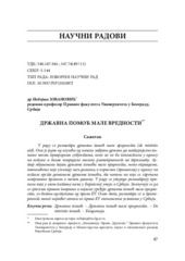 U radu se razmatra državna pomoć male vrednosti (de minimis aid). Ona je jedno od izuzeća od načela zabrane državi da materijalno pomaže nekim privrednim subjektima, kako ih ne bi povlastila u odnosu na ostale i time povredila njihovu ravnopravnost na tržištu. Autor objašnjava pojam državne pomoći male vrednosti, njeno opravdanje, povlašćenje koje uživaju njen davalac i korisnik (primalac) u odnosu na ostale vrste dozvoljene državne pomoći, te načine na koje se sprečava izigravanje pravila o njenom davanju. U radu se uporedo razmatraju pravila koja u ovom pitanju važe u Evropskoj uniji i Srbiji. Zaključuje se da se srpskim pravom površno i nejasno uređuje državna pomoć male vrednosti, uz bitna odstupanja od prava EU. Osim toga, razmatra se i primerenost njenog najvećeg iznosa iz prava EU ekonomskim uslovima u Srbiji.