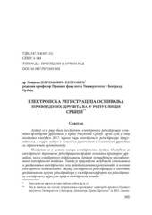 abstract = "Autor se u radu bavi postupkom elektronske registracije osnivanja privrednih društava u pravu Republike Srbije. Prvi put je ovaj postu pak omogućen 2017. godine radi elektronske registracije preduzetnika, a nedugo zatim i osnivanja jednočlanog i višečlanog društva sa ograničenom odgovornošću. Postupak se u celini izvodi elektronskim putem. Omogućeno je elektronsko podnošenje registracione prijave osnivanja privrednog društva, kao i elektronsko potpisivanje prijave korišćenjem kvalifikovanog elektronskog potpisa. Takođe je predviđena mogućnost sačinjavanja i dostavljanja elektronskih ili digitalizovanih dokumenata i nji hovo elektronsko potpisivanje. Najzad, elektronska registracija se okončava dostavljanjem odluke registratora u elektronskoj formi na registrovanu elektronsku adresu za prijem elektronske pošte. Uvođenje postupka elektronske registracije, a zatim i njena šira i efikasnija primena, predstavljaju jedan od važnih ciljeva u daljem unapređenju efikasnosti postupka osnivanja privrednog društva u Republici Srbiji. Ovaj postupak došao je do izražaja i tokom pandemije Covid-19, te iskustva iz tog perioda mogu da budu od značaja u daljem unapređenju ovog postupka., In this paper author presents an overview of the procedure of electronic registration of the companies' formation in the Serbian law. This procedure was made possible for the first time in 2017 for the purpose of electronic registration of entrepreneurs, and shortly afterward the establishment of a single-member and multi-member limited liability company. The procedure is performed entirely electronically. It is possible to submit electronically the registration application for founding a company, as well as to electronically sign the application using a qualified electronic signature. The possibility of composing and submitting electronic or digitized documents and their electronic signing is also envisaged. Finally, electronic registration ends with the delivery of the registrar's decision in the electronic form to the registered e-mail address. The introduction of the electronic registration procedure, and then its wider and more efficient application, represents one of the important goals in further improvement in the efficiency of the procedure of establishing a company in Serbia. This procedure came to the fore during the Covid-19 pandemic, and the experiences from that period may be important in the further improvement of this procedure.",
