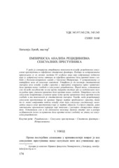 abstract = "U radu je empirijski utvrđivana povezanost između recidivizma seksualnih prestupnika i određenih statičkih faktora. Podaci za istraživanje prikupljeni su iz ličnih listova 82 osuđena lica koja izdržavaju (odnosno koja su izdržala) kaznu zatvora za određena krivična dela protiv polne slobode u Kazneno-popravnom zavodu u Sremskoj Mitrovici. U istraživanju su potvrđene neke od polaznih hipoteza. Utvrđeno je da postoji statistički značajna veza između mlađeg uzrasta u trenutku izvršenja prvog krivičnog dela protiv polne slobode i seksualnog recidivizma. Pored toga, ustanovili smo da veće mogućnosti za ovu vrstu povrata postoje ako su nedozvoljene polne radnje prvo učinjeno krivično delo protiv polne slobode. Utvrdili smo i da seksualni povratnici uglavnom vrše istu vrstu krivičnih dela protiv polne slobode i ta povezanost je statistički značajna. Takođe, kada recidiviraju seksualni prestupnici po pravilu biraju žrtve približnog uzrasta, tako da se može napraviti podela između onih koji seksualno zlostavljaju maloletna lica i onih prestupnika čije su žrtve odrasli. Sa druge strane, rano započinjanje kriminalne karijere nije povezano s kasnijim specijalnim povratom. Ustanovili smo i da ekonomski položaj, bračni status kao i ranija osuđivanost (osim za krivična dela protiv polne slobode) ne utiču na seksualni recidivizam., The paper empirically examines relation of some static factors to recidivism among sexual offenders. The research sample consists of data gathered from personal files of 82 convicted persons who are either currently in the prison in Sremska Mitrovica or who have already served their sentences. Some of the hypotheses of the research have been confirmed. Firstly, a link between age at initial offending against sexual freedom and sexual recidivism is found to be statistically significant. Moreover, sexual recidivism is associated with the type of first criminal offense against sexual freedom - there are greater chances for recidivism if the first crime is less serious (prohibited sexual acts). Lastly, sexual offenders generally commit the same type of crimes against sexual freedom and this link is statistically significant. It is possible to make a clear distinction between two groups of recidivists - those who choose to victimize children and juveniles and those whose victims are adults. On the other hand, early onset of criminal career is not found to be statistically important. The same is concluded for marital and socio-economic status as well as for the history of rule violation (except sex crimes).",