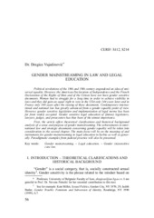Political revolutions of the 18th and 19th century engendered an idea of universal equality. However, the American Declaration of Independence and the French Declaration of the Rights of Man and of the Citizen have not been gender sensitive documents. Women had to struggle for a long time in order to achieve visibility in laws and they did gain an equal right to vote in the USA only 144 years later and in France only 160 years after the issuing of these documents. Contemporary international and national law has greatly advanced from a gender equality point of view. However, gender sensitive legislation and implementation of legal norms has been far from widely accepted. Gender sensitive legal education of (future) legislators, lawyers, judges, and prosecutors has thus been of the utmost importance. First, the article offers theoretical clarifications and historical background analysis of a sense and purpose of gender mainstreaming. The achievements in international law and strategic do...cuments concerning gender equality will be taken into consideration in the second chapter. The main focus will be on the meaning of and instruments for gender mainstreaming in legal education in Serbia as well as generally. Paradigmatic examples from judicial practice will also be presented.