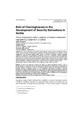 title = "Uloga klirinških kuća u razvoju trgovanja izvedenim hartijama od vrednosti u Srbiji, Role of clearinghouses in the development of security derivatives in Serbia",